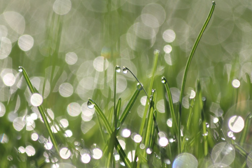 Water on grass/Water and sun dance in the morning dew