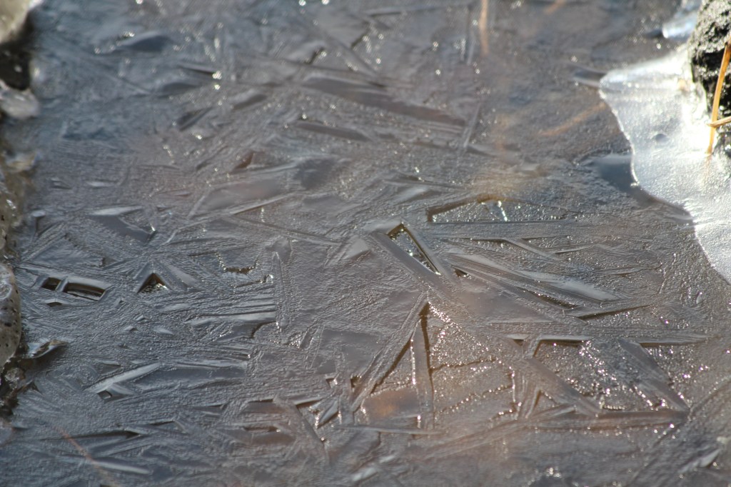 Ice on a puddle/Freezing, thawing, refreezing makes a mosaic out of water